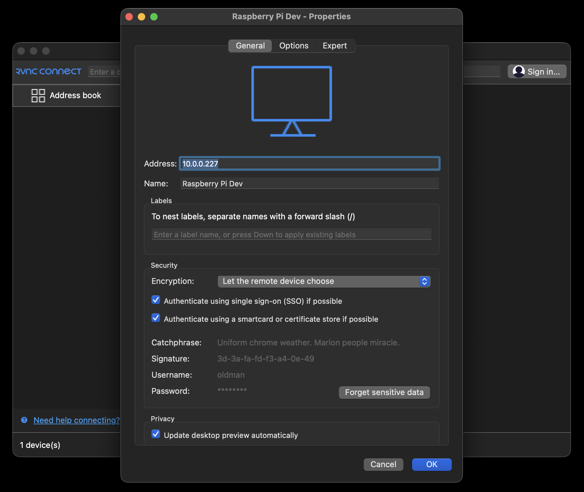 - Open VNC Viewer on your dev computer