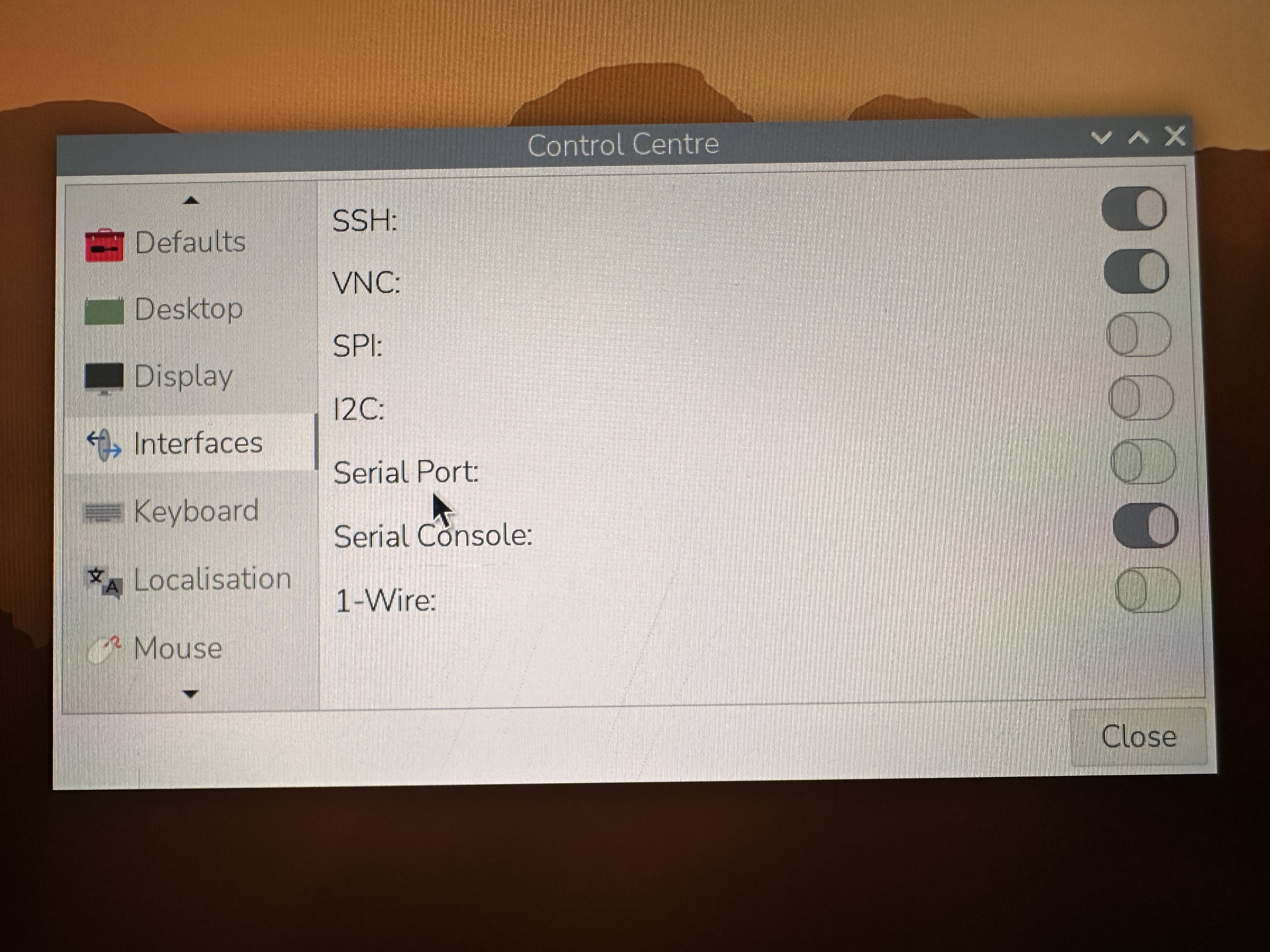 - Remote access via VNC and SSH — Enabled both, connected from the dev computer, and ditched the monitor and keyboard.