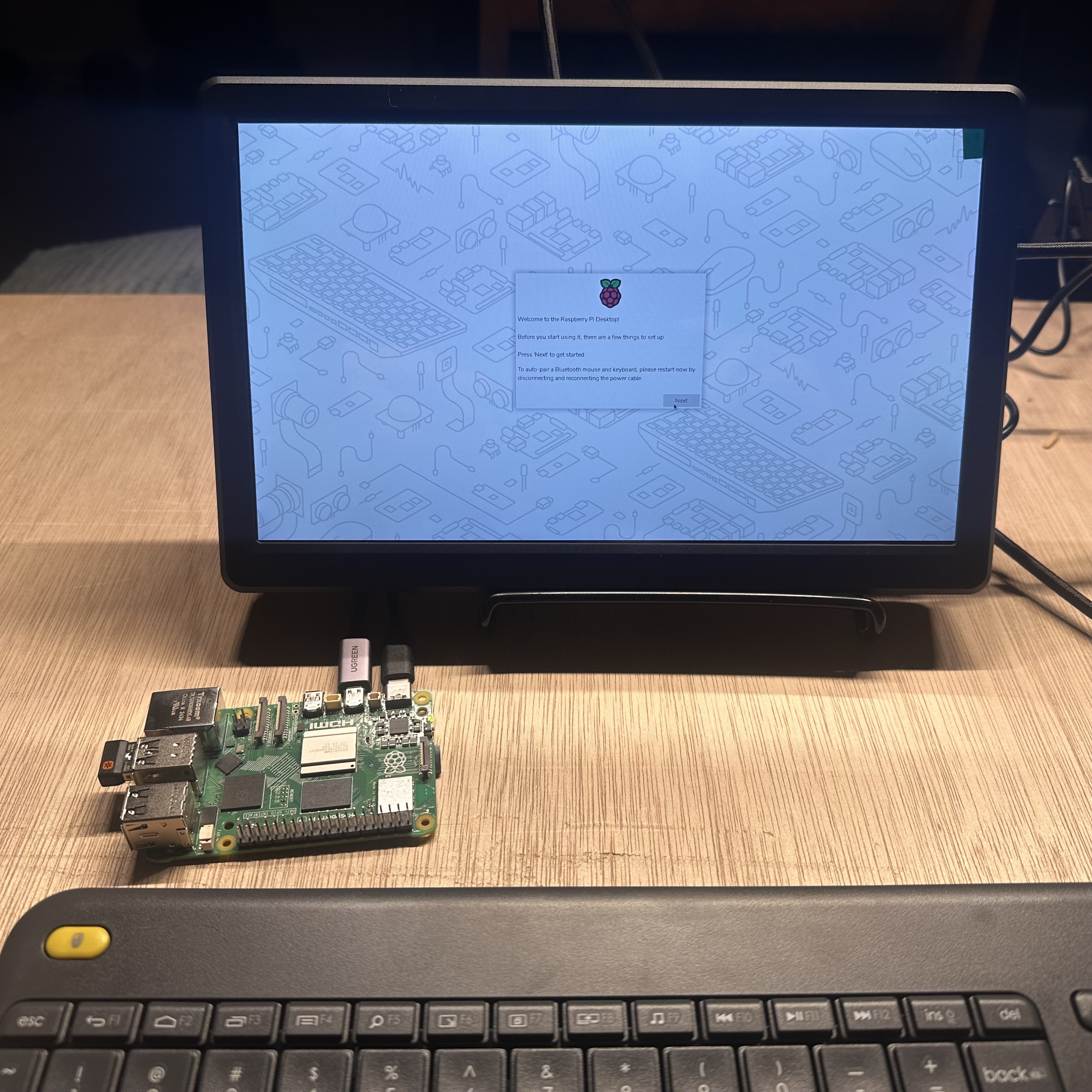 - A running Raspberry Pi — Flashed the microSD card, booted into Raspberry Pi OS, and got through the setup wizard.