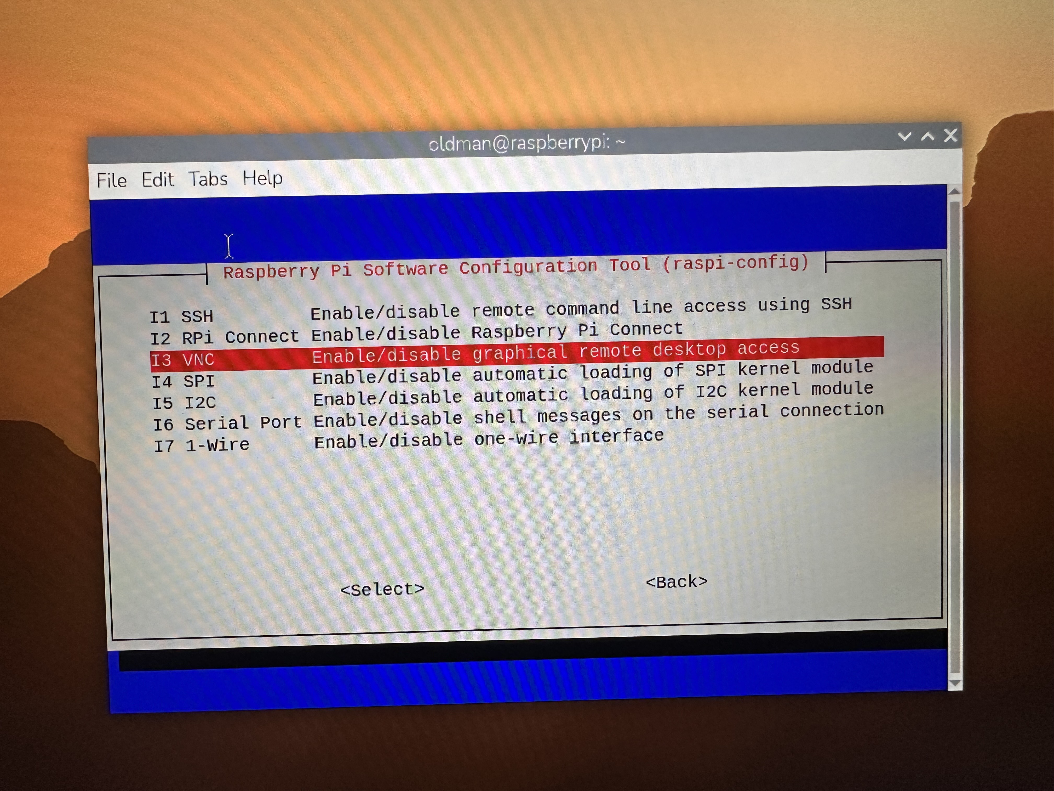 sudo raspi-config - Navigate to Interface Options. Press Enter to select.